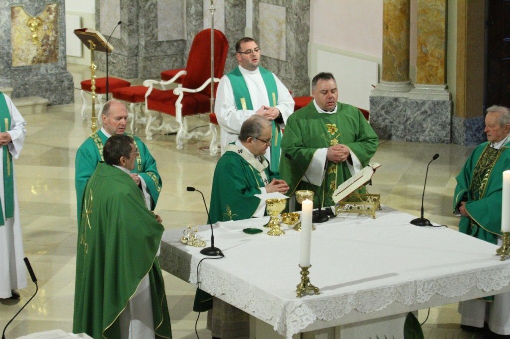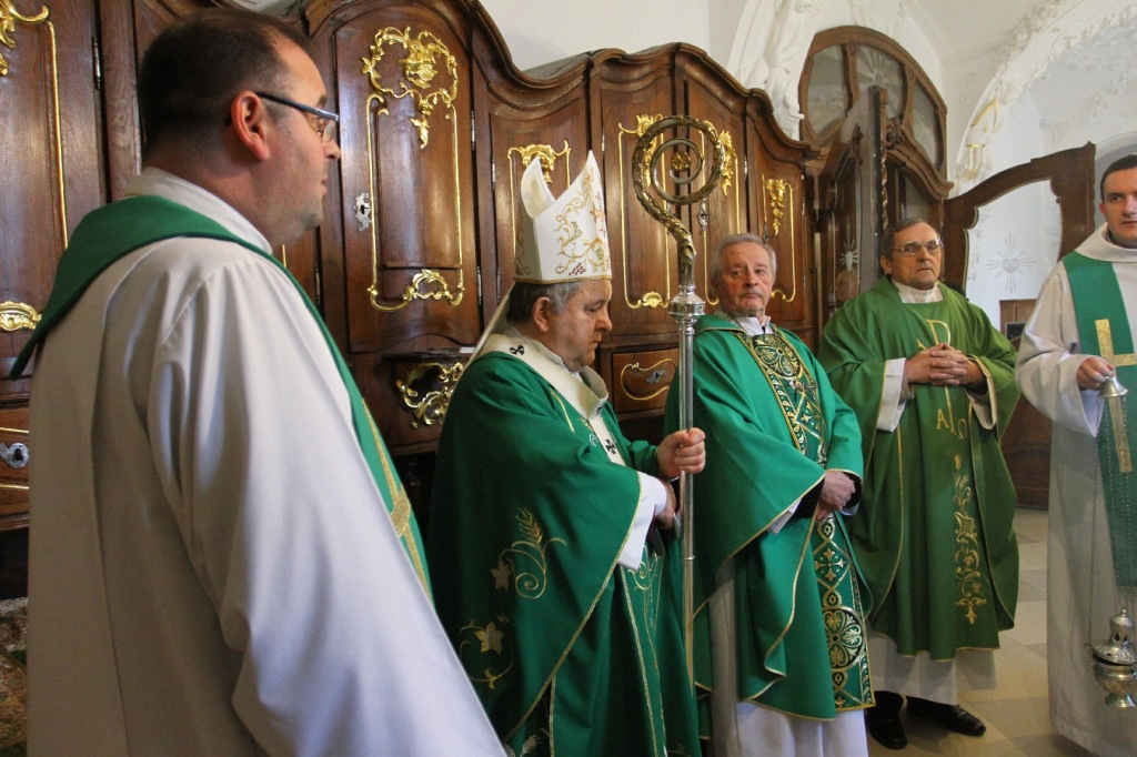 Bábel Balázs érsek az ellenségszeretet keresztény értelmezéséről tanított homíliájában. A szentmisét követően a zarándokok imádkoztak Asztrik érsek sírjánál, majd megtekintették az érseki központ látnivalóit.