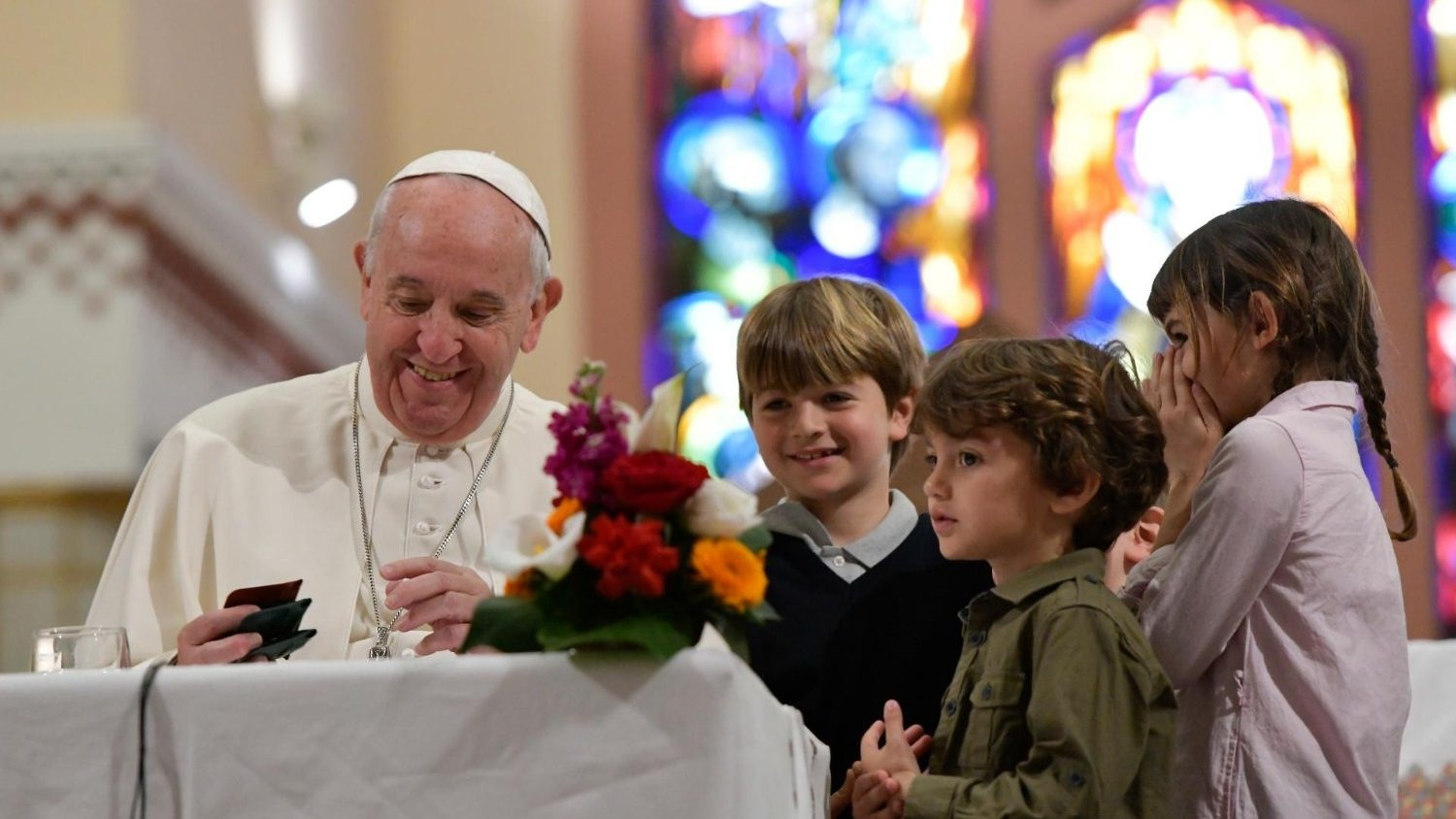 [Négy gyermek megy a pápa