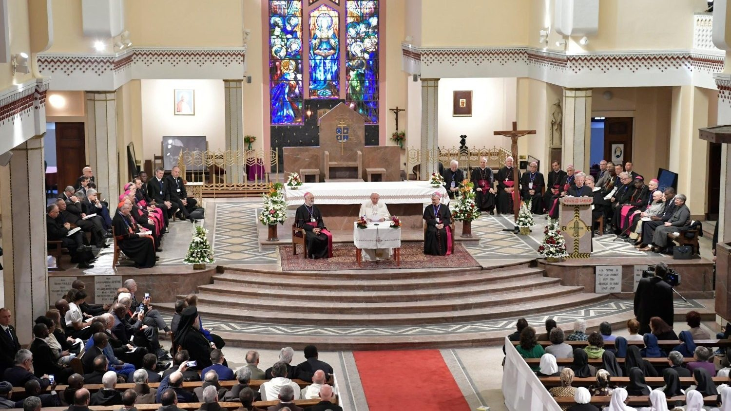 mellé. Ő (franciául) azt mondja: „Íme, ők a jövő! A jelen és a jövő!”]Testvéreim, még egyszer szeretnék köszönetet mondani mindannyitoknak jelenlétetekért és küldetésetekért itt, Marokkóban. Köszönöm alázatos és tapintatos szolgálatotokat, idős szerzeteseink példáját követve, akik közül szeretném üdvözölni a koridőst, Ersilia nővért. Kedves nővér, szívélyesen üdvözlöm Önön keresztül az idős testvéreket és nővéreket, akik egészségi állapotuk miatt fizikailag nincsenek jelen, de imájukkal kísérnek bennünket.